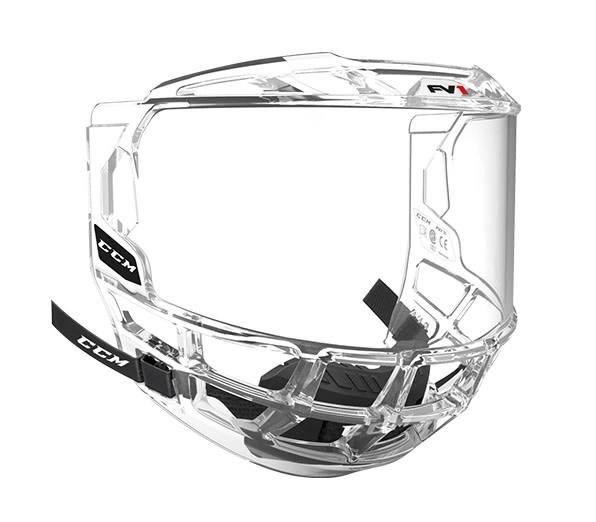 CCM has developed a new full facial visor. With a modern look that was designed to improve the air flow and offer high performance anti-scratch coating and anti-fog treatment, the new CCM FV1 gives players great visibility without compromising performance.