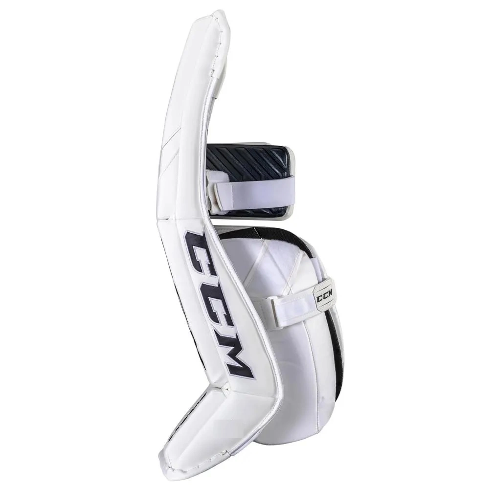 CCM has raised the inside edge with a Dual Density molded construction to create a better seal with the ice for more efficient cross-crease movements. Further back to the leg channel, an all new leg channel design adds more durability and design option through the middle of the pad. Returning for the strapping is CCM’s Quick Motion strap that promotes a responsive connection between the goaltender and their pad that can be adjusted quickly. The QMS sits on the outside of the leg channel and goes through a loop on the opposite side to pull back and get a secure fit.