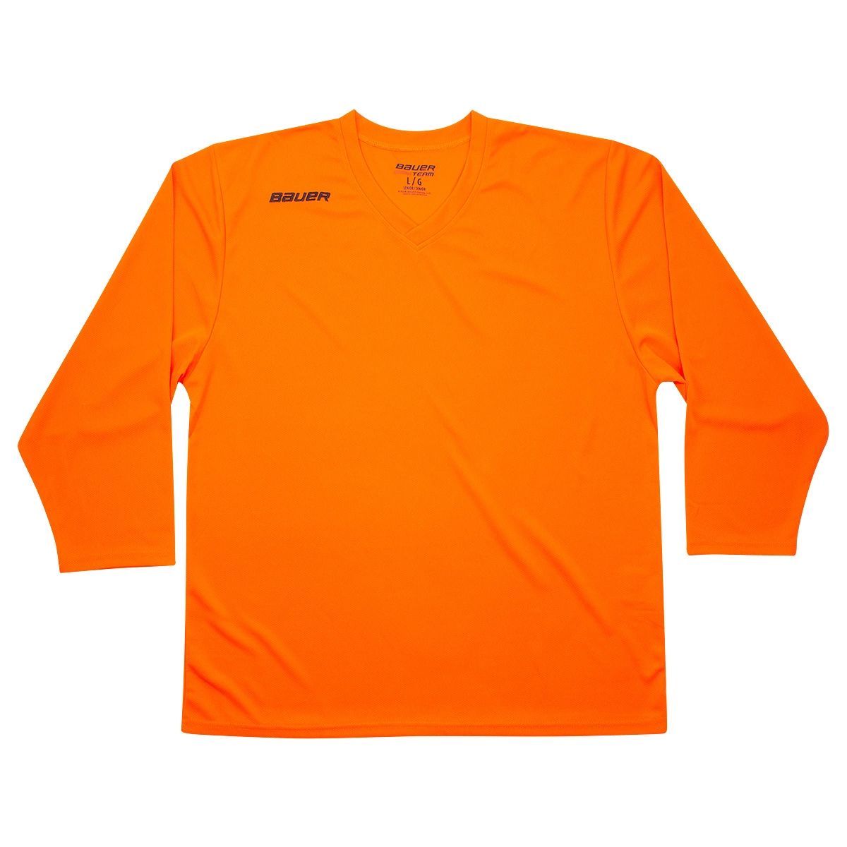 The Bauer Flex Practice Hockey Jersey promotes a lightweight yet durable design that can be used for practice or games. It sports a clean look that offers a ton of room for custom embellishment and has a single heat-pressed Bauer logo on the right collarbone.