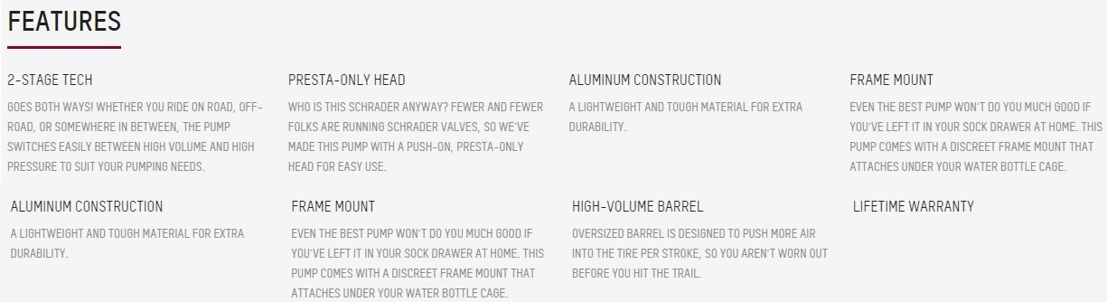 The Airstick 2-stage is a durable aluminum pump with enough puff for mountain bike tires and enough pressure for road tubes. With a simple flip-of-a-switch, this pump rotates between a high volume mountain bike tire pump or a high pressure road bike tire pump eliminating your need for owning multiple mini pumps.
