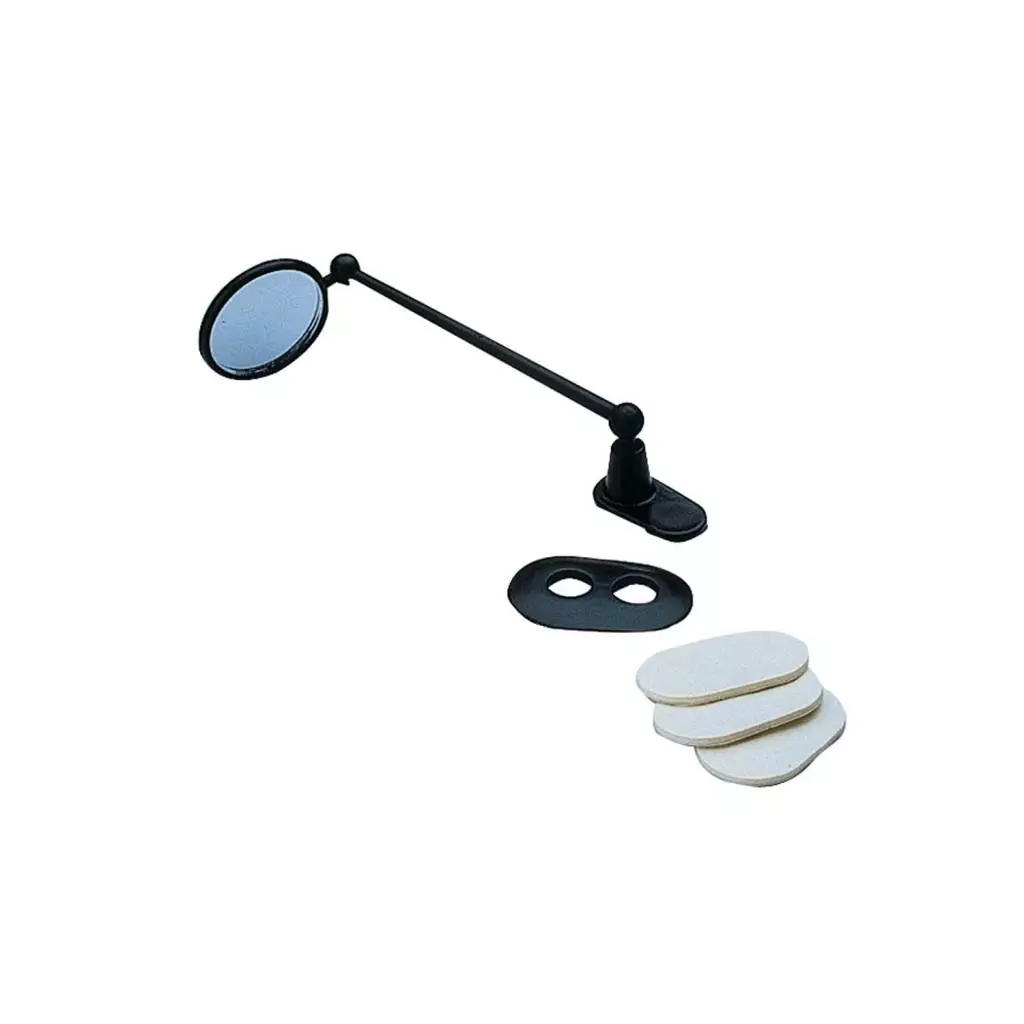 - The tiny mirror is positioned close to your eye so you can see easily behind you