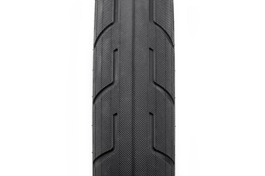 The tread sits further round the sidewall (where the tire contacts when grinding) and because the tread is smooth (no knobs) then it doesn’t snag when grinding – also the sidewall life is prolonged due to this…