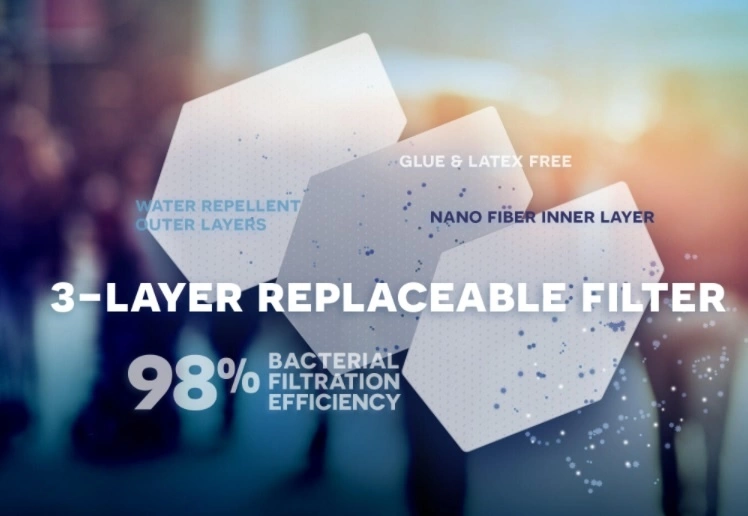 - 3-layer filter with one layer of melt-blown Nano fiber, enclosed by to layers of water repellent fiber