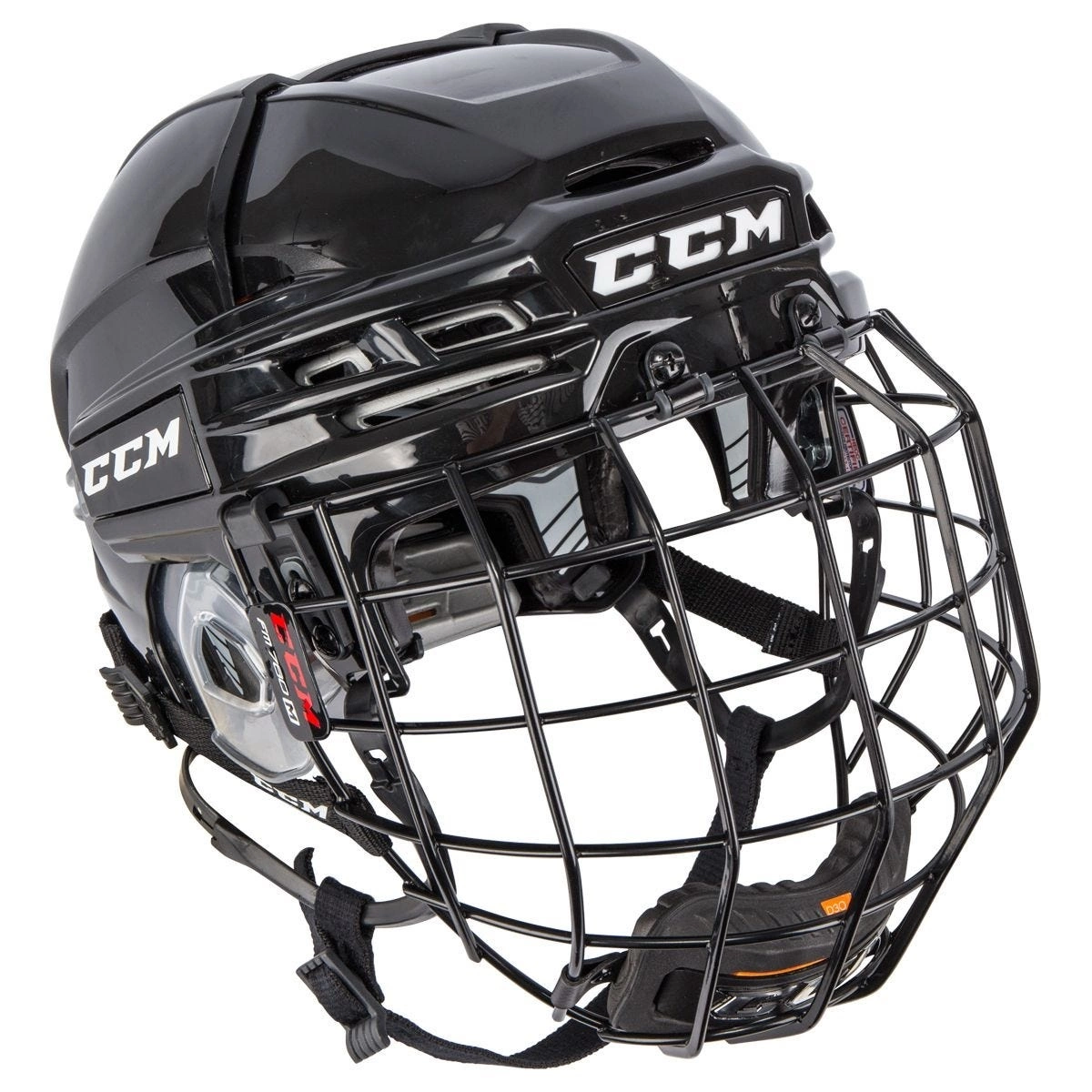 - SHELLOptimized aesthetics and reinforced side impact frame. A pro-approved look with new structure stiffness for added protection on sides.*The CCM Super Tacks 910 Hockey Helmet Combo comes equipped with the new FM780 cage. The FM780 cage features thin flat alloy bars that help maximize on-ice visibility. The multi-density foam chin cup with D30 smart material provides maximum comfort, sweat management, and protection