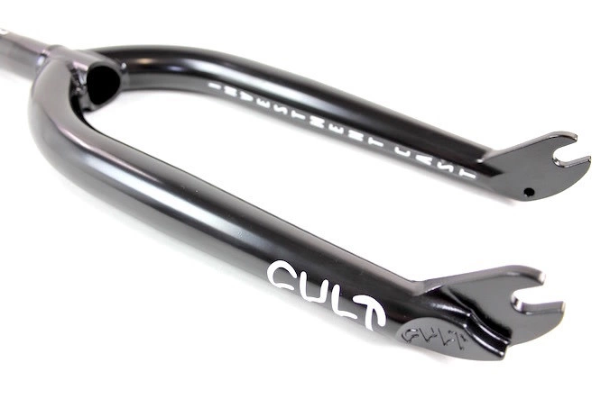 V4 of the popular IC fork. Made from revised 100% Cult Classic tubing for increased strength and then 100% post-weld heat treated. Investment cast 1pc drop outs for maximum strength and a super sleek finish. 1-pc machined steerer tube with an integrated bearing race, tapered legs, and tire clearance for 2.40 tires. 28mm Offset.
