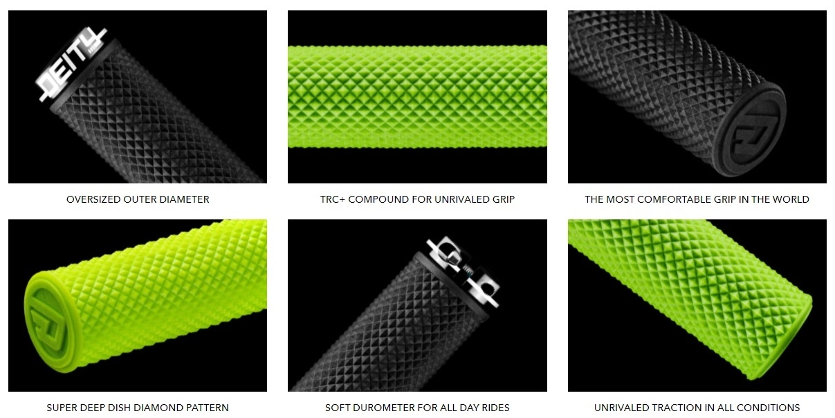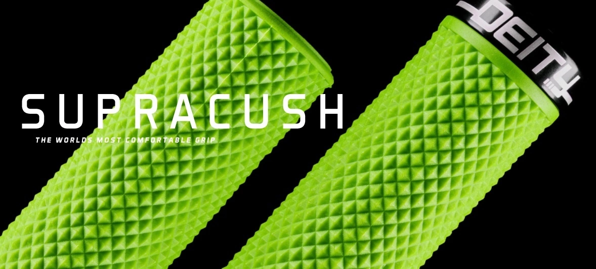 DEITY has done it again!! We’ve gone back to the drawing board and redeveloped our TRC+ rubber compound to deliver 33% more grip and cushion without compromising the amazing durability you’ve come to expect from all DEITY Grips. Rounding out our grip line to offer something for everyone, the SUPRACUSH Grip delivers the most comfortable and deeply cushioned grip on the market!! Our goal was to create the perfect grip for riders of any hand size looking for increased vibration damping, a larger feeling grip or a more supple ride. Not only does the SUPRACUSH give you an unmatched level of cushion with our TRC+ rubber compound but the larger deep dish diamond pattern offers the most comfortable grip possible without compromising control, precision and durability. Our grips are shaking up the game by rethinking how your connection with your bike can impact your overall riding experience and the SUPRACUSH is perfect for any rider seeking a luxurious experience that will extend their time on two wheels.