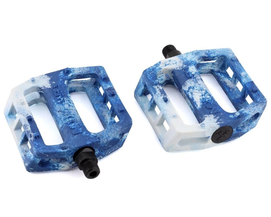 Nylon plastic body with 10 square molded pins for added grip. Concaved horizontally to grip the sole of your shoe better and for added comfort. Also features a solid heat treated CRMO spindle.
