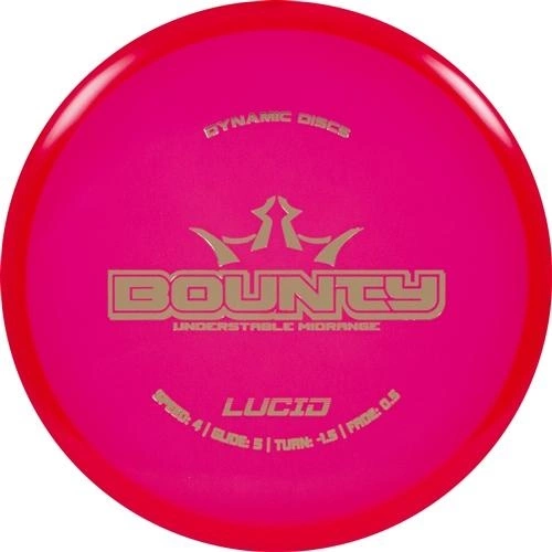 The Bounty brings a different feel to the Dynamic Discs midrange lineup. With a shallow rim and bead, the Bounty is a slightly understable midrange that acts like a slower Maverick. At shorter distances and slower speeds, the Bounty will fly very straight with good glide and minimal fade. When thrown with more speed, the Bounty will slowly move to the right without burning into the ground. Use the Bounty to shape shots in the open or in the woods, and you’ll love the control you gain!