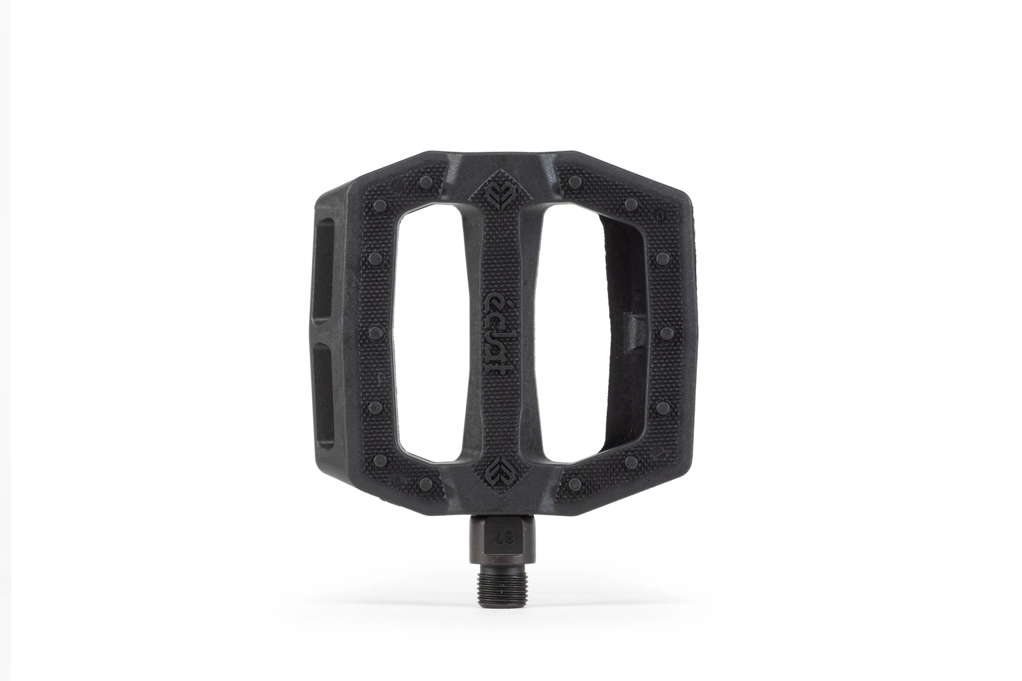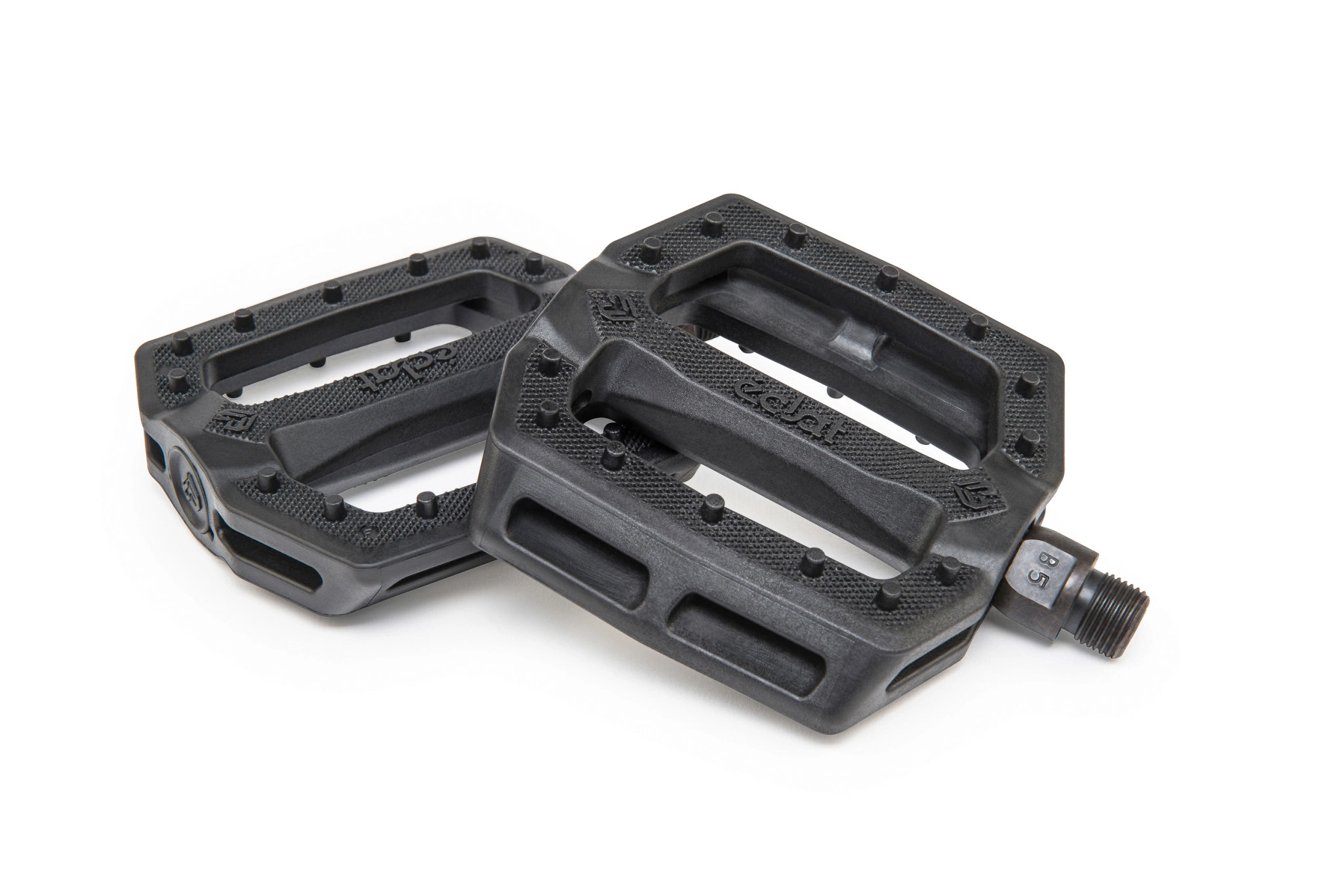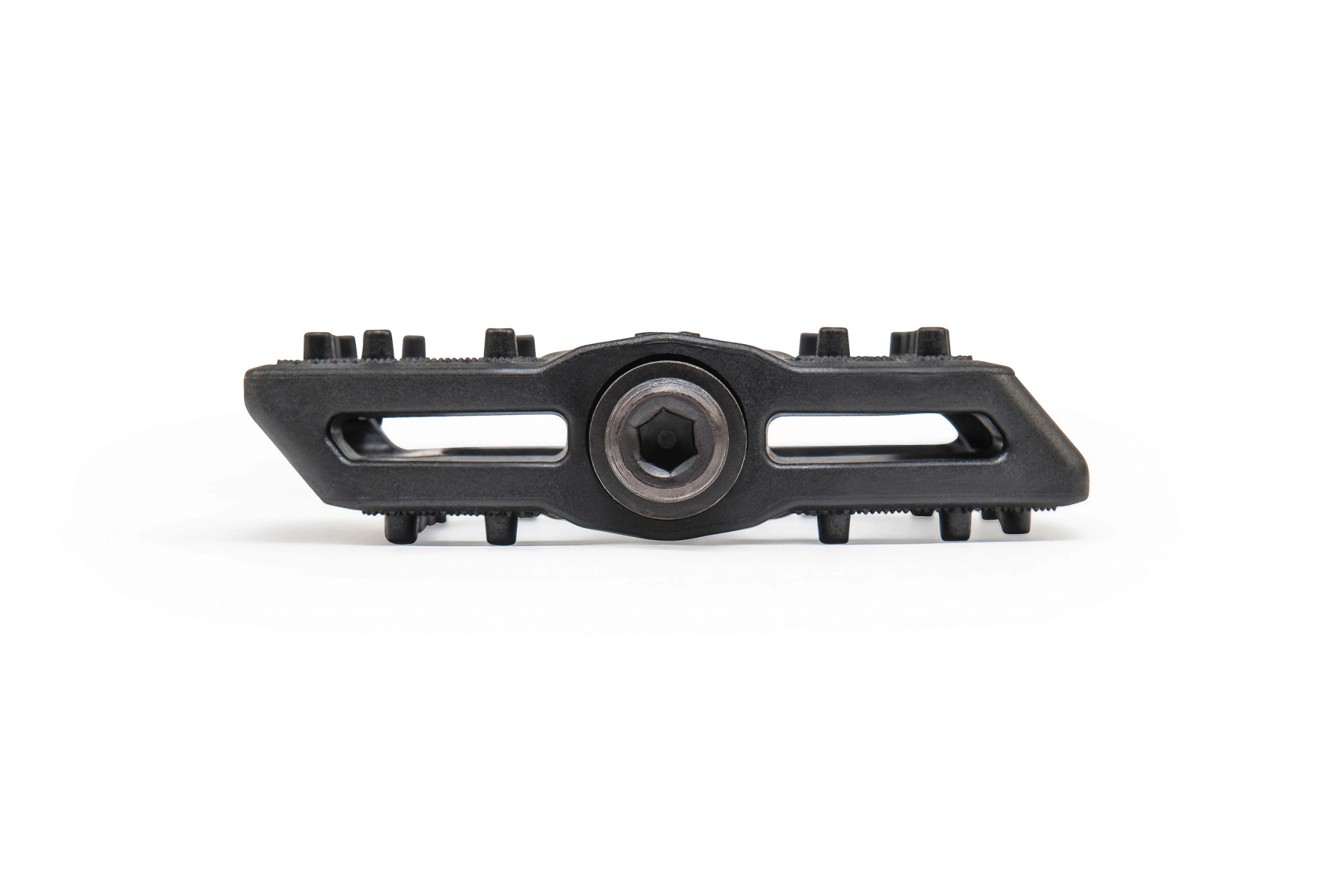Our riders asked for a low profile, micro style pedal using the loose ball bearing system and integrating a crmo spindle, we scratched our heads and shortly after delivered the Slash nylon pedal. It’s somewhere close to perfect in size, features a lightweight design and has a nice knurled top surface.