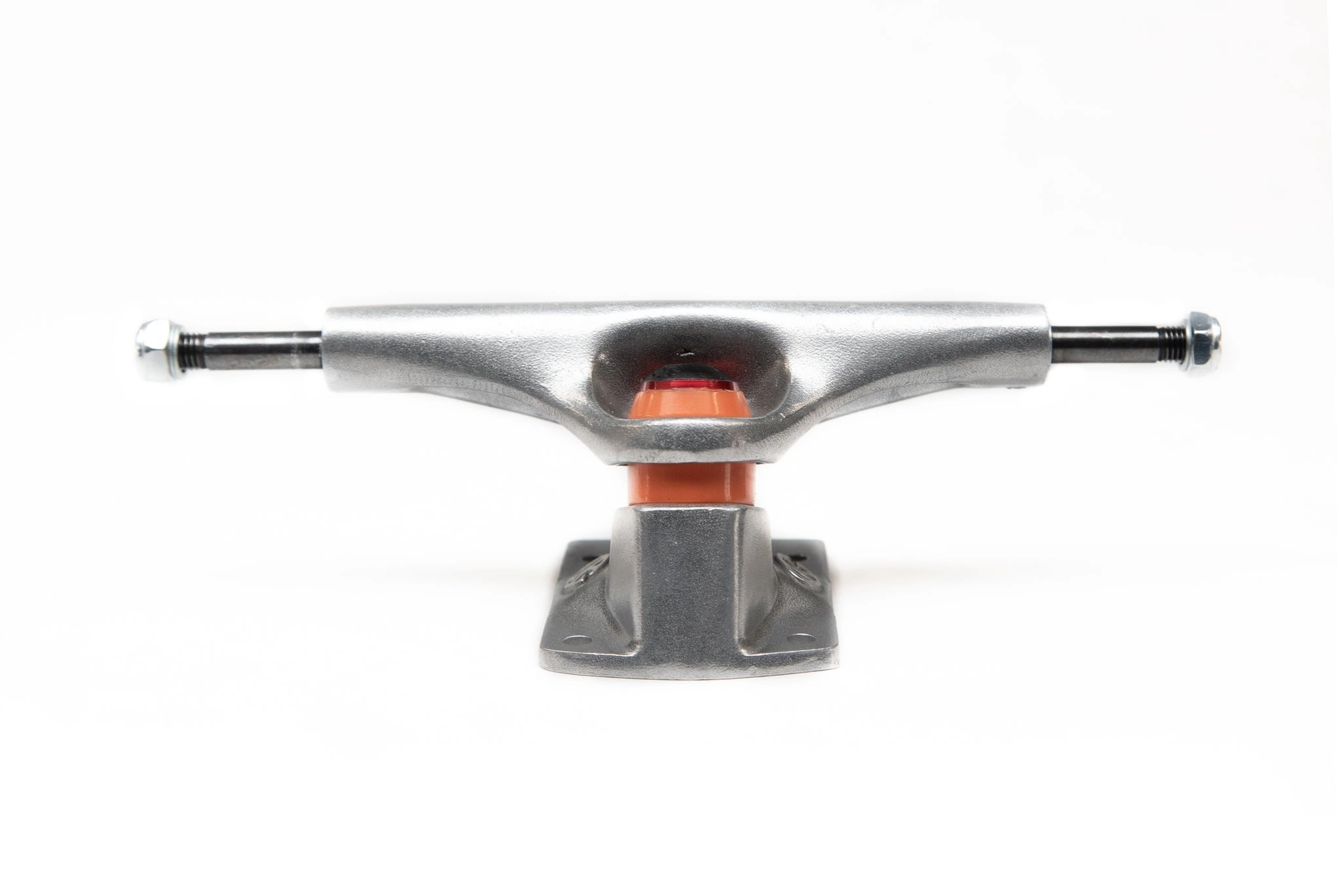 The GrindKing Disruptor leads the way in performance and innovation! This truck will take your grinds to the next level by providing smoother and longer grinds without kingpin hang ups. The curved edge on the baseplate will help keep your board from breaking.
