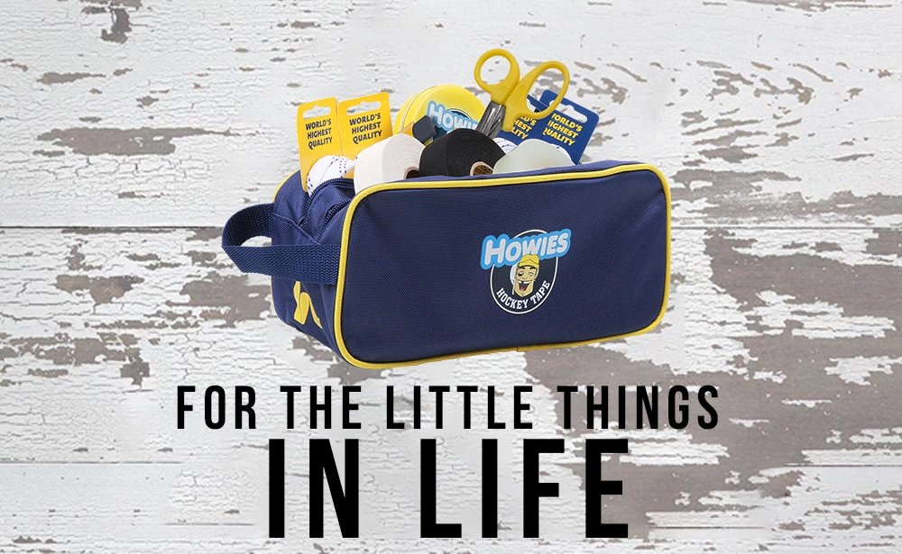 Every hockey player knows what happens to a good roll of tape when you toss it in your bag. After a couple days, it’s a little bit beat up. After a week or two, it’s practically unusable. That’s why we created the Howies Accessory Bag. Made to protect tape, store spare laces, skate stones, and to keep your whole bag organized. The Accessory Bag frees you from the burden of ruined rolls, lost wax, wandering laces, and doubling as a shower bag. After all, you have the world’s highest quality tape… now it’s time to keep it that way.