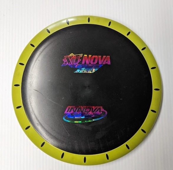 The Nova is a unique putter designed with overmold technology. The flight plate is made from a firm Pro material that’s fused to a grippy putter Pro plastic rim. The soft rim absorbs impact and sticks the landing while the firm flight plate allows for powerful throws making the Nova an excellent putter and approach disc.