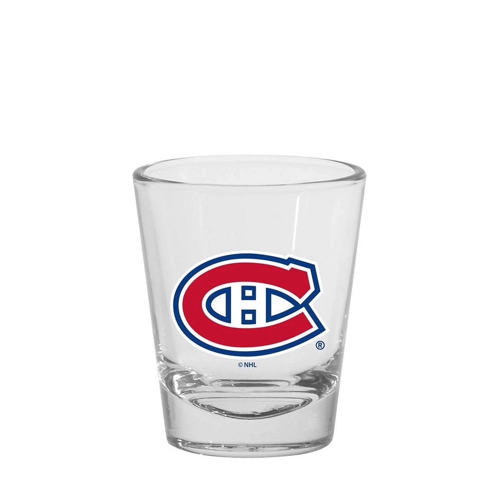 1.5 oz Clear glass shot glass. Clean NHL team logo. Celebrate your team with a shot of your favorite beverage.
