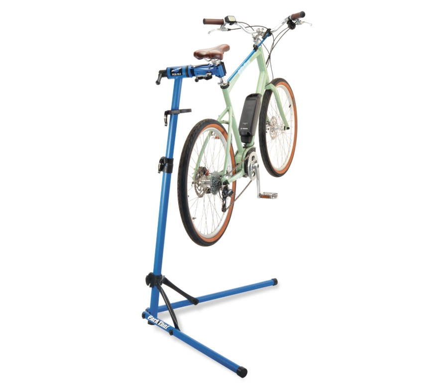 The PCS-10.3 features an integrated height-adjustable parts tray, as well as accessory ports for the Park Tool #106 Work Tray or PTH-1 Paper Towel Holder (both sold separately), so your tools and small parts are always within reach. Quickly folds down for storage and transport with a smooth-operating leg support system that pulls both legs up in one simple motion.