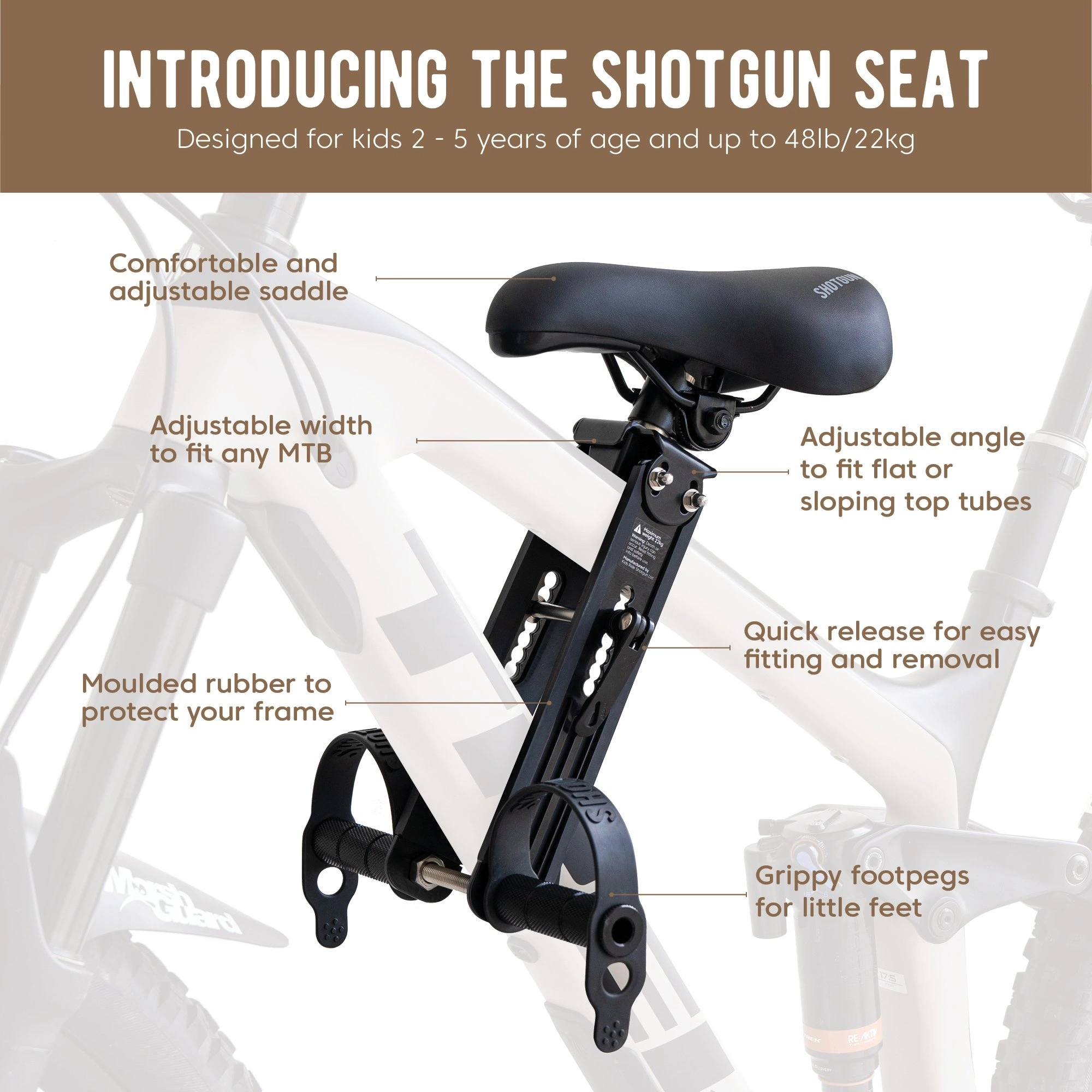 The shotgun seat is designed for kids 2-5 years of age, and up to 48lb.
